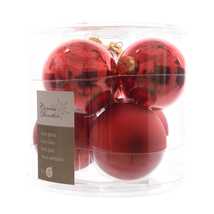 14) Шар стекло красный глянцевый/матовый d8см 6шт/уп (артикул: KA140180);