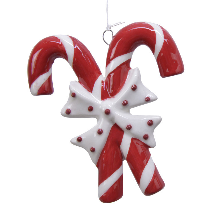 8) Декор Конфета с бантом красно-белая посох 9см (артикул: KA630279);