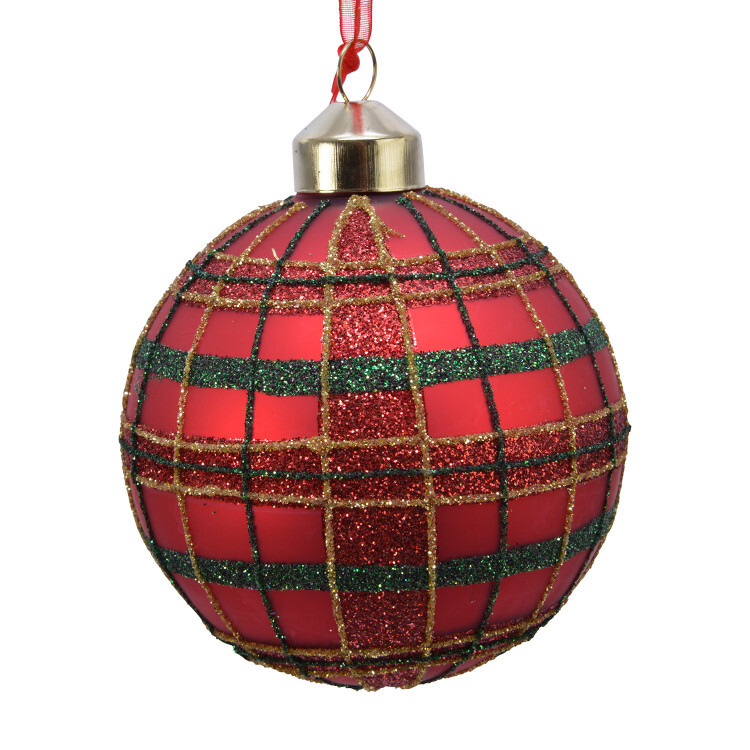 13) Шар стекло красный в клеточку d8см 3шт/уп (артикул: KA067386);