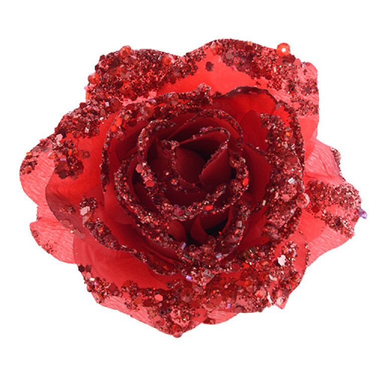 7) Декор Роза красная с блеском d14см (артикул: KA629348);
