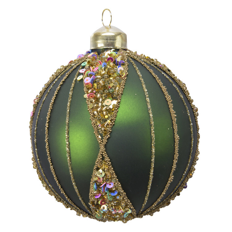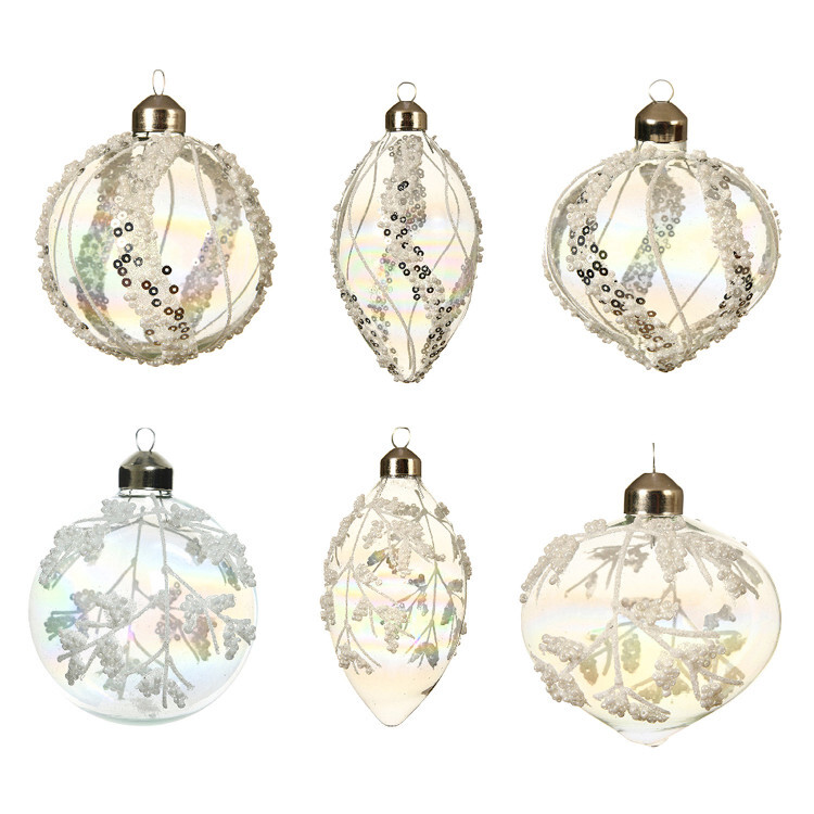 21) Шар/ Орнамент/ Олива стекло прозрачный с бусинами и пайетками d8см 6 в ассорт (артикул: KA061309);