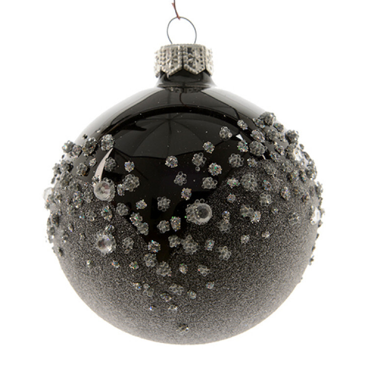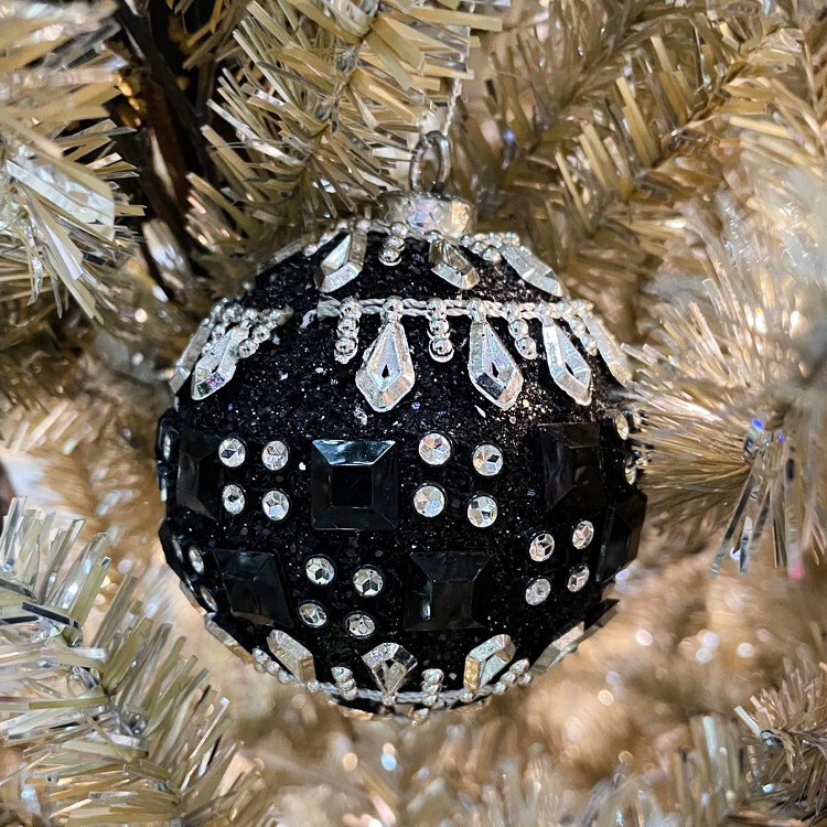 15) Шар стекло черный глянцевый со стразами d8см 6шт/уп (артикул: KA054724);