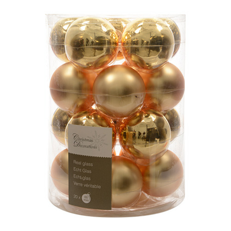12) Шар стекло золотой глянцевый/матовый d6см 20шт/уп (артикул: KA140214);