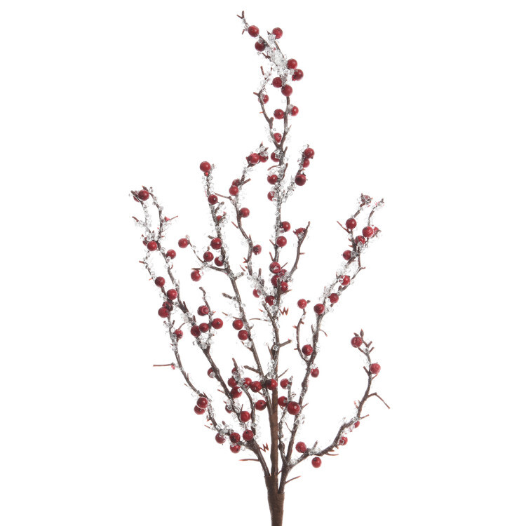 16) Декор Веточка с красными ягодами и льдом из акрила 55см (артикул: KA622380);