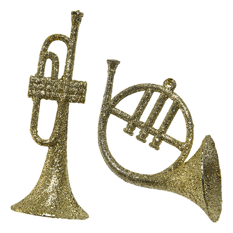 4) Декор Музыкальные инструменты труба золотистая 5х9х7см 2шт/уп (артикул: KA027471);