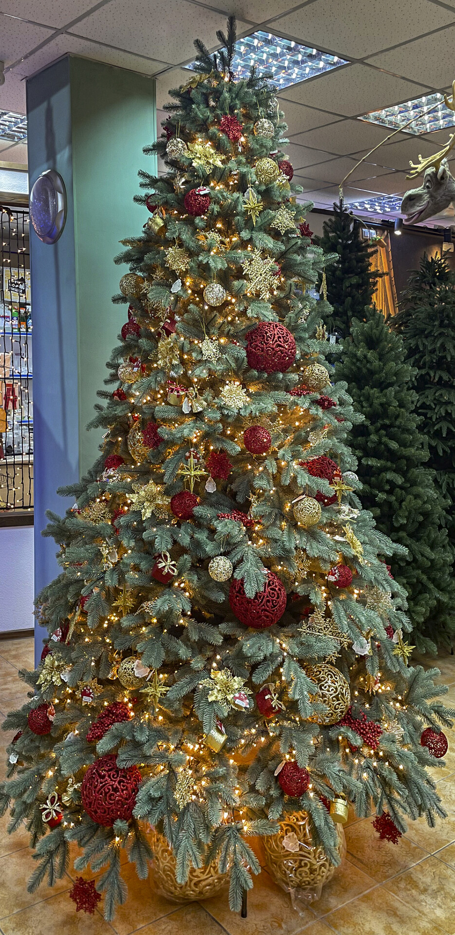 • Хвоя: Литые иголки из 100% PE, внешне идентичны натуральным еловым иголкам.