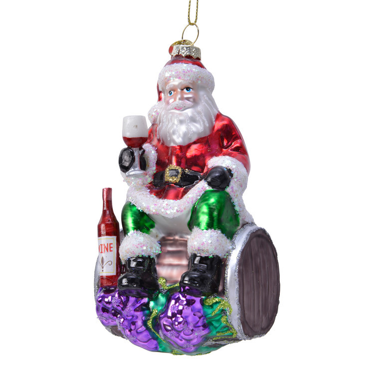 8) Декор Санта на бочке с вином стекло 16см (артикул: KA123382);