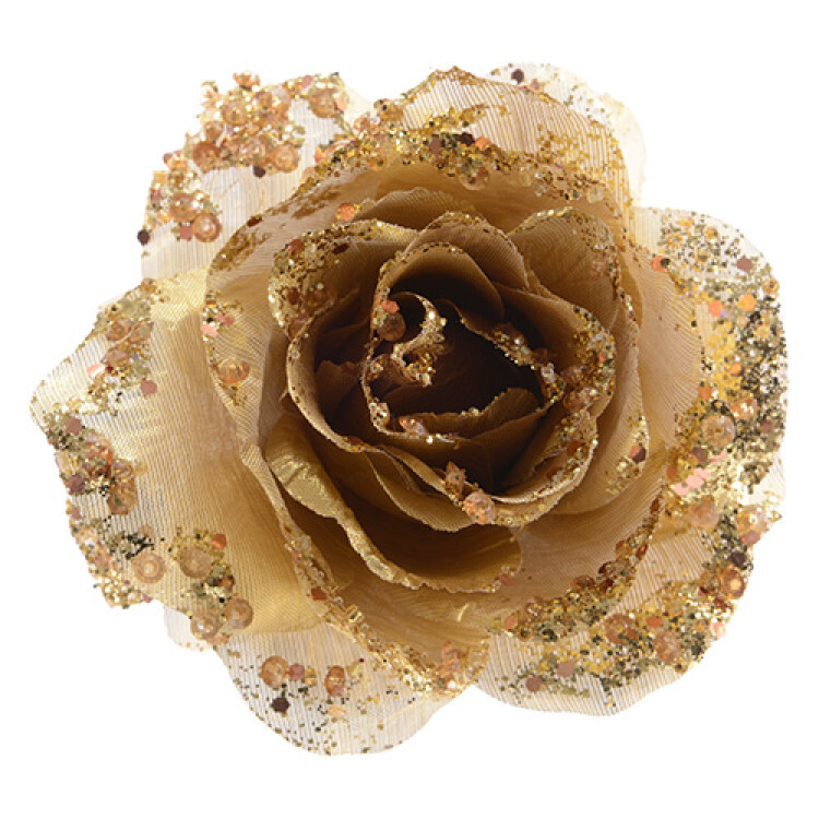6) Декор Роза золотая с блеском d14см (артикул: KA629351);