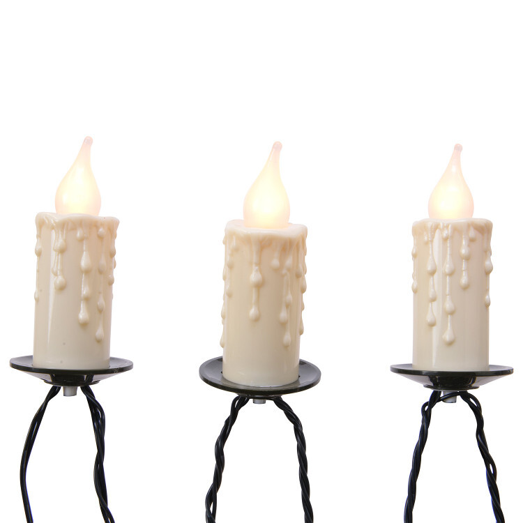 1) Гирлянда 11,6м теплобелая Свечи Джамбо белые кабель зеленый 1,5м клипсы 30диодов LED indoor (артикул: KA490833);