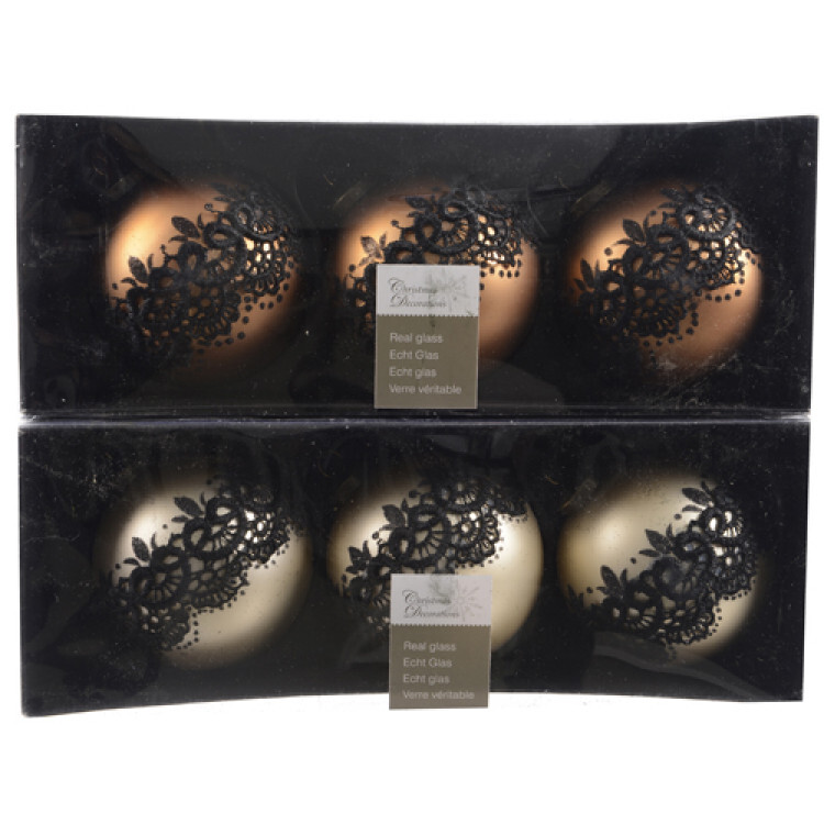 16) Шар стекло золотой/серебристый с черной кружевной лентой d8cм 3шт/уп 2 в ассорт (артикул: KA069670);