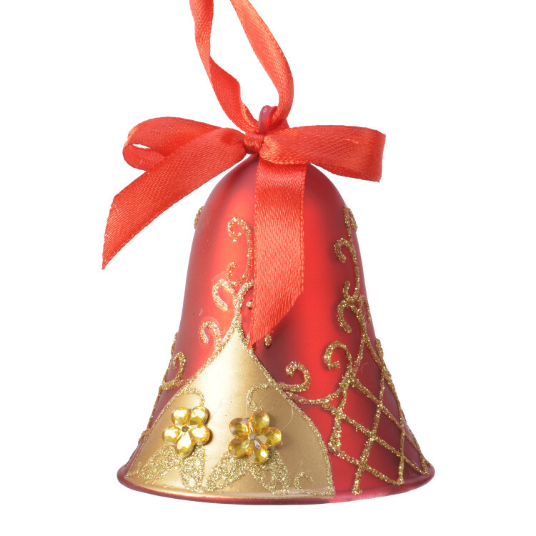 2) Декор Колокольчик стекло красный/золотой/бордовый 9см (артикул: KA120147);