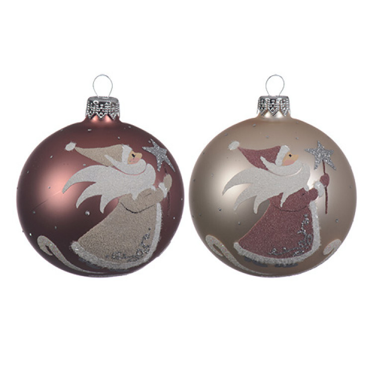 13) Шар стекло Дед Мороз перламутровый/розовый d8cм 2 в ассортименте (артикул: KA133599);