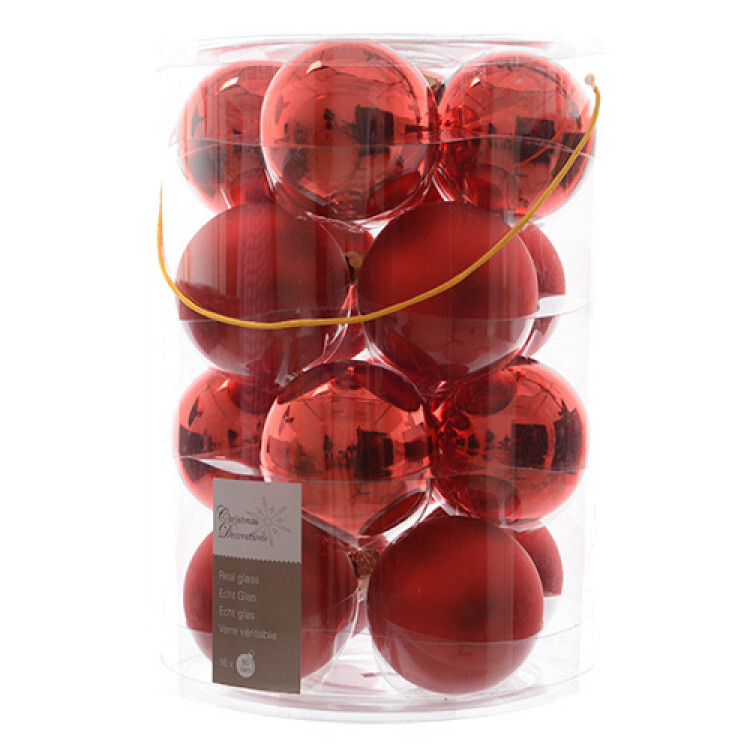 10) Шар стекло красный глянцевый/матовый d8см 16шт/уп (артикул: KA140720);