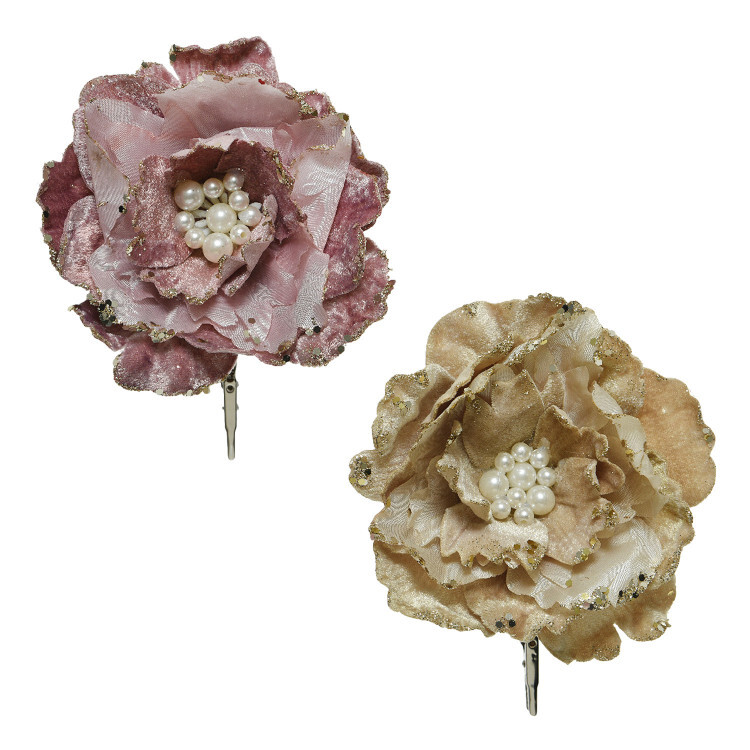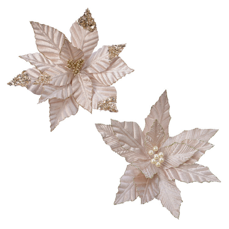 11) Декор Пуансеттия шампань на клипсе 30см 2 в ассорт (артикул: KA629511);