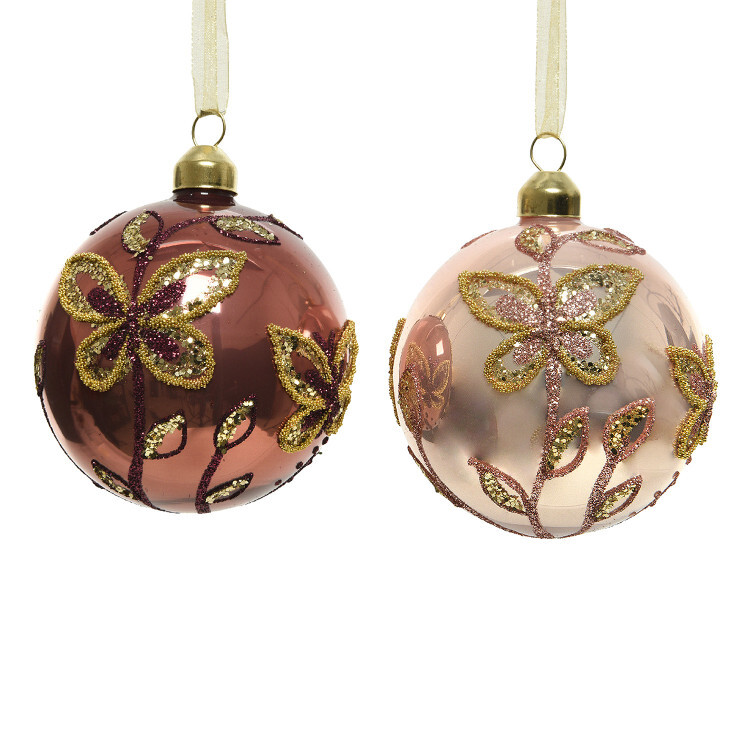 19) Шар стекло терракотовый/розовый с бабочкой d8см 3ш/уп 2 в ассорт (артикул: KA062455);