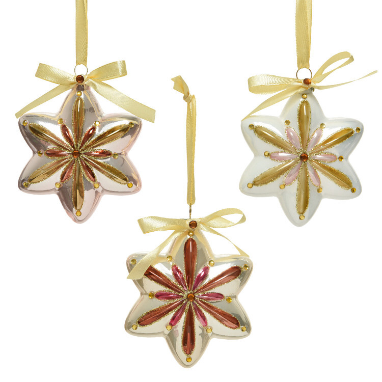 5) Декор Звезда стекло серебристый/жемчужный/розовый 9см 3 в ассорт (артикул: KA030167);