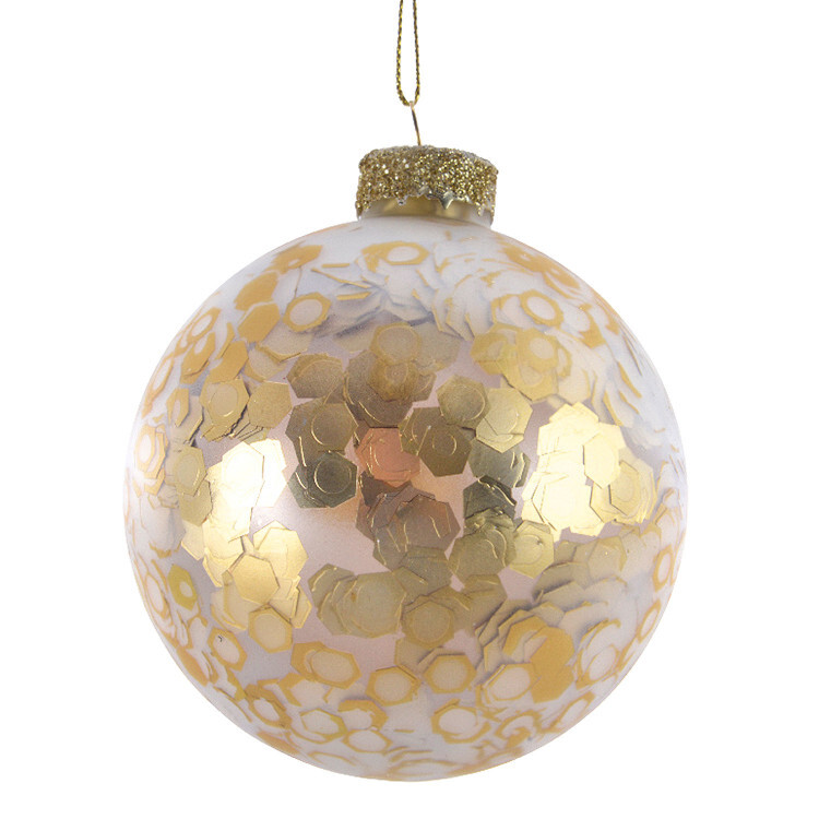 8) Шар стекло с матовыми золотыми пайетками d8см 3шт/уп (артикул: KA067415);