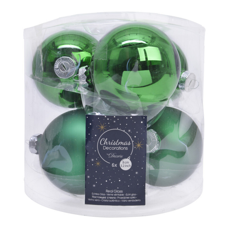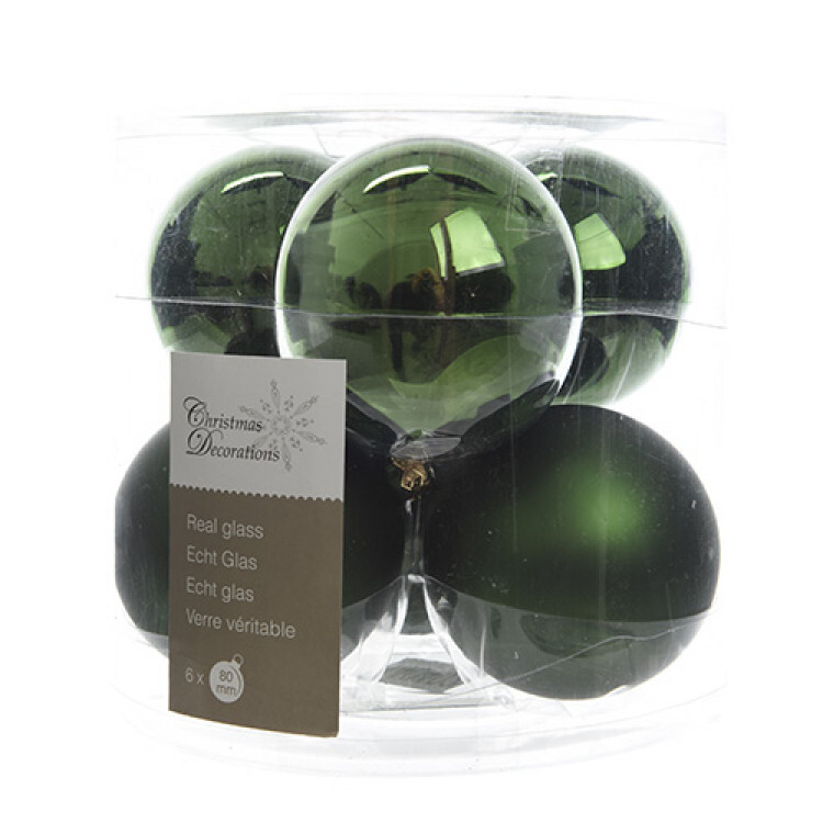 10) Шар стекло зеленый глянцевый/матовый d8см 6шт/уп (артикул: KA140402);