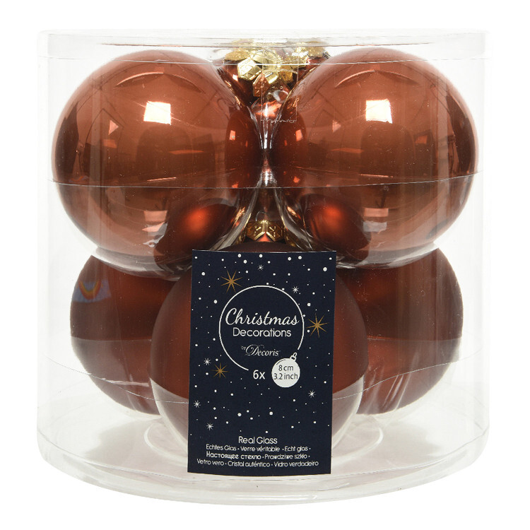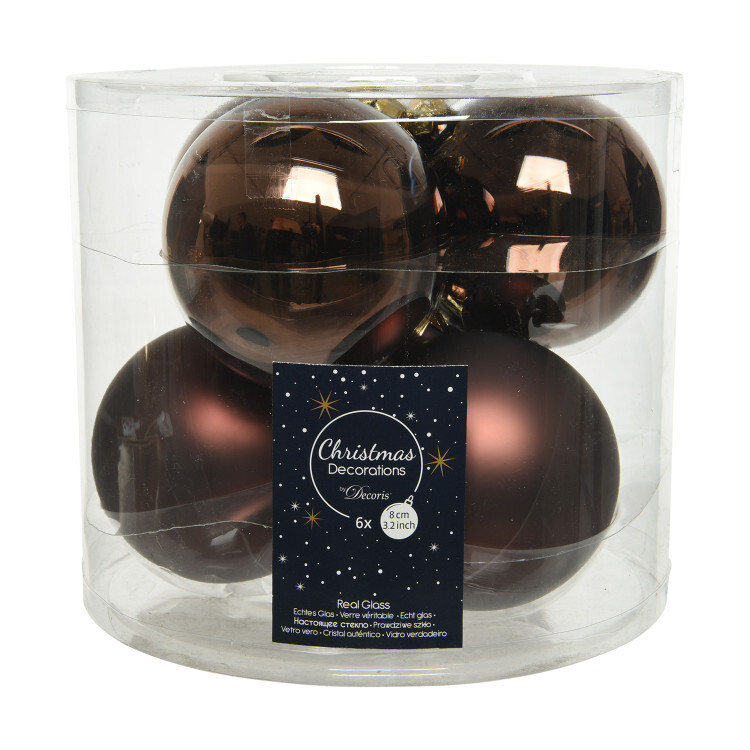 11) Шар стекло темно-коричневый глянцевый/матовый d8см 6шт/уп (артикул: KA140688);