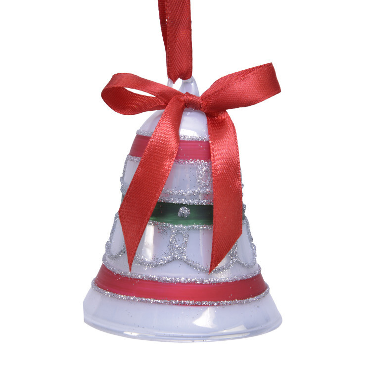 7) Декор Колокольчик стекло бело-красно-зеленый 8см (артикул: KA121075);
