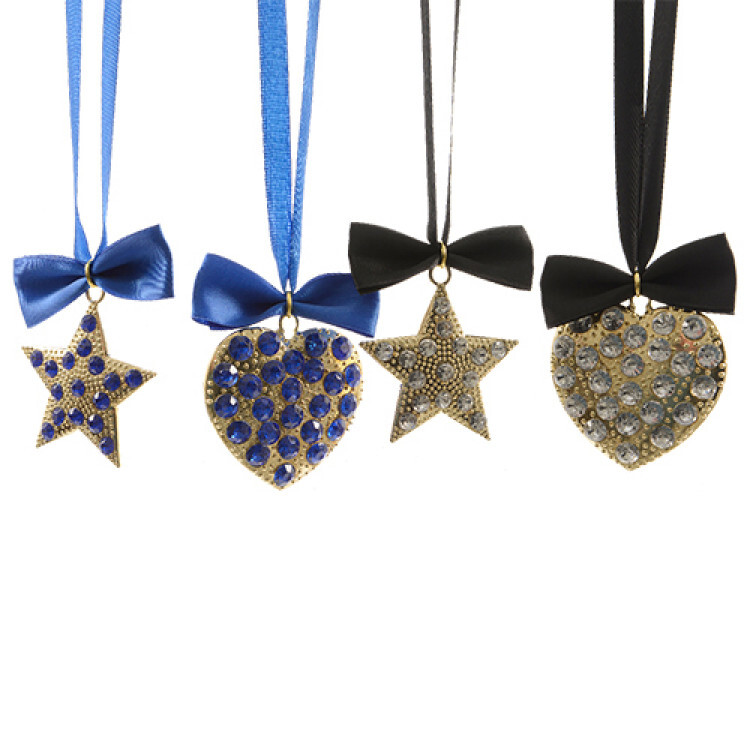 20) Декор Подвеска Звезда/Сердце металл золото с синими стразами 7х10см 2 в ассорт (артикул: KA385315);
