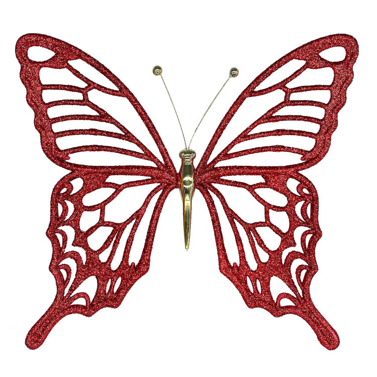 2) Декор Бабочка мини красная с блеском 11х9,5х1; 15х15х1см (артикул: MS864262, MS864330);