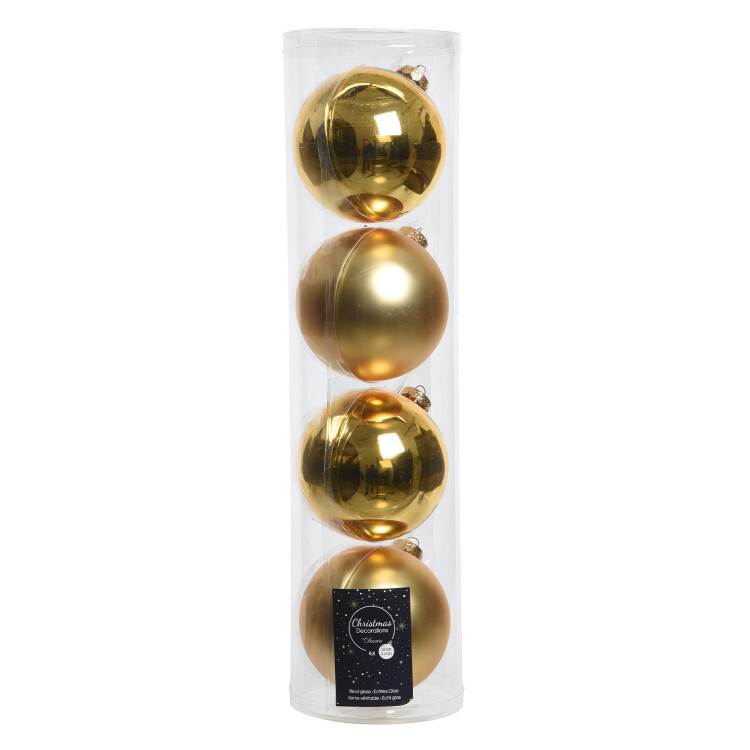 11) Шар стекло золотистый глянц/матовый d10см 4шт/уп (артикул: KA141500);