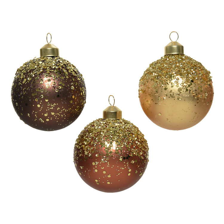 13) Шар стекло терракотовый/коричневый/золотой d8см 3шт/уп 3 в ассорт (артикул: KA030200);