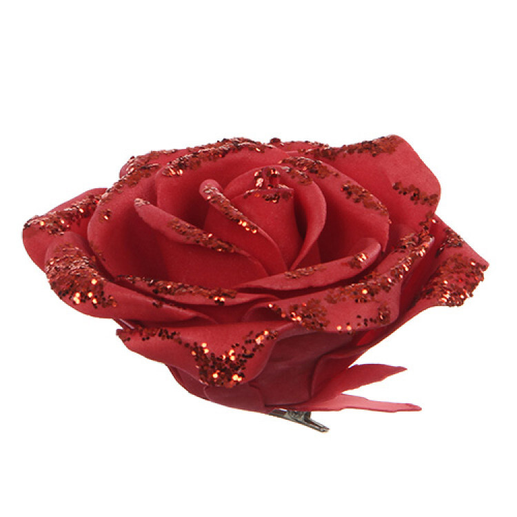 11) Декор Роза красная 13см на клипсе (артикул: ED1031939);