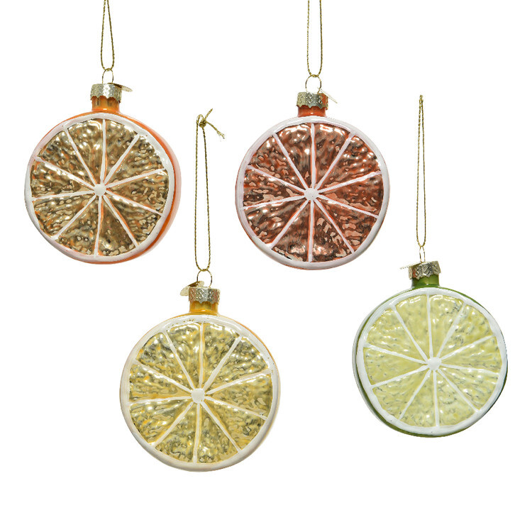 17) Декор Дольки лимона стекло красный/оранж/желтый/зеленый 7,7см 4 в ассорт (артикул: KA120441);