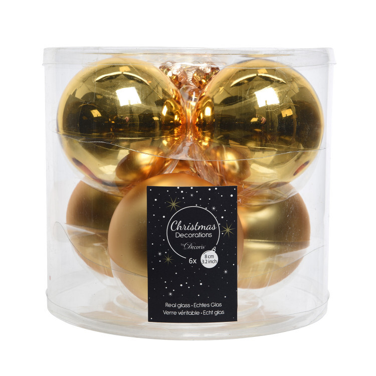 11) Шар стекло золотой матовый d8см 6шт/уп (артикул: KA113014);