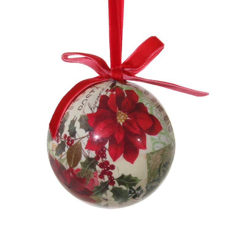 4) Шар красный с пуанцеттией и бантом d8см (артикул: SH44901);