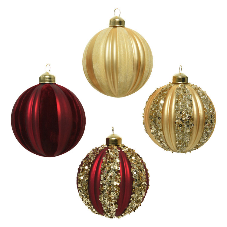 9) Шар стекло красный глянцевый/матовый d10см 4шт/уп (Артикул: KA141502);