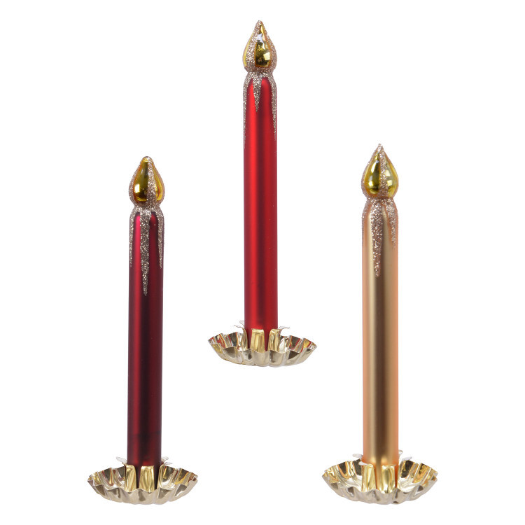 2) Декор Cвечи на елку стекло 3шт/уп d4,3x4,8см (артикул: KA120273);