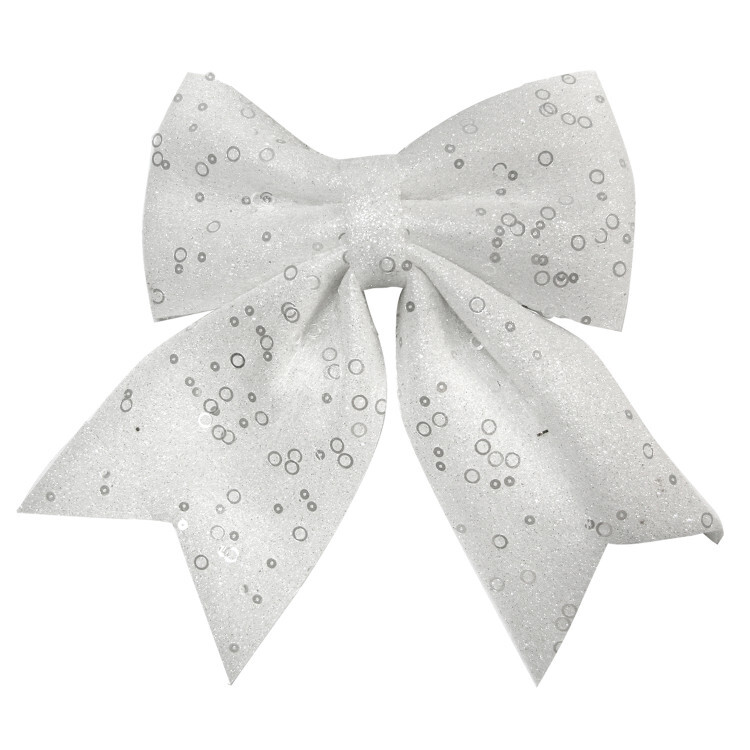 2) Декор Бант белый с блестками (14х19см, 20х25см, 28х34см) (артикул: KA515293, KA515292, KA515291);