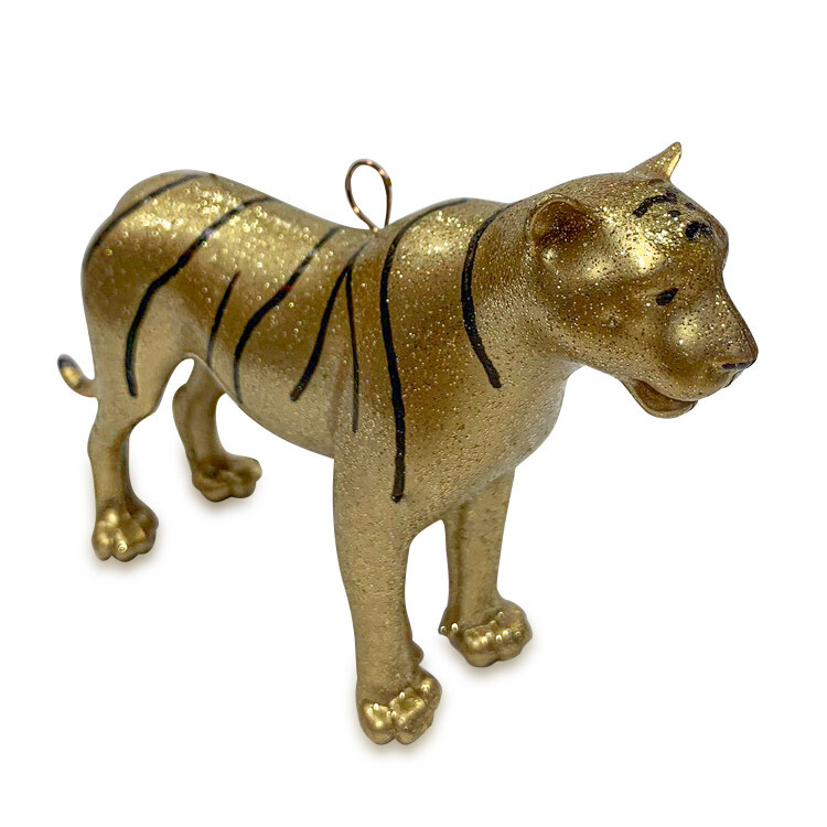 7) Декор Тигрик полосатик золотистый с блеском 12х12х3 см (артикул: MS863838);