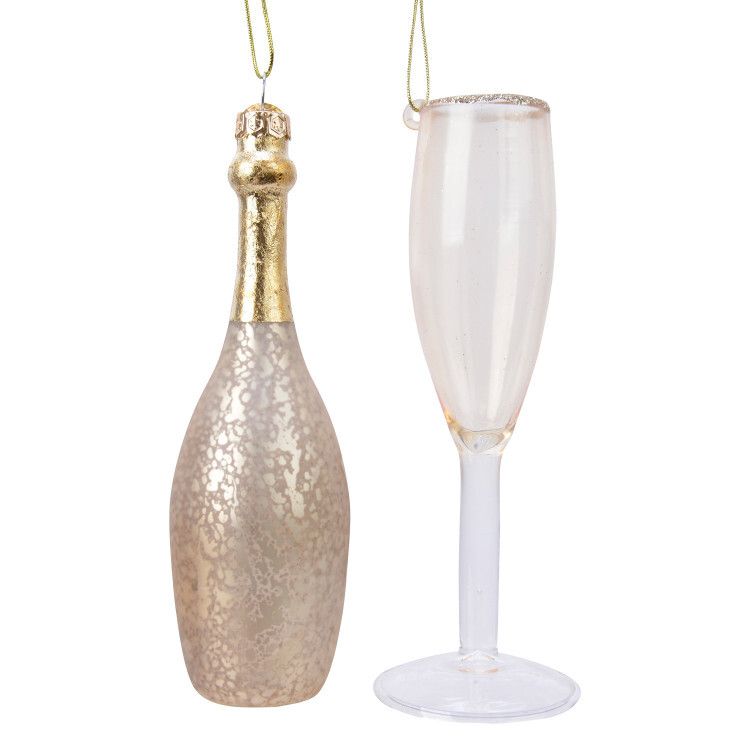 4) Декор Шампанское и бокал стекло 13,5см 2шт/уп (артикул: KA120868);