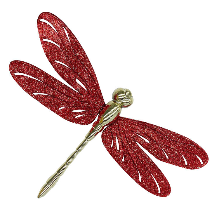 6) Декор Стрекоза большая красная с блеском 19х12х2см (артикул: MS864217);